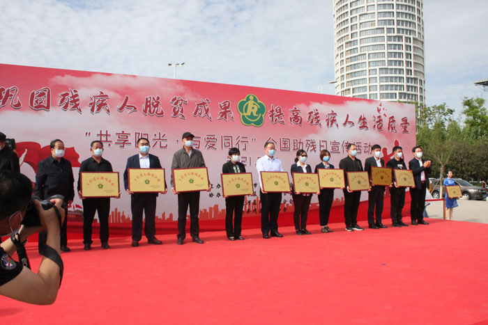 5月16日,在第三十一次“全国助残日”到来之际,沧州市残疾人联合会协同新华区、运河区、沧县残疾人联合会共同举办了,以“巩固残疾人脱贫成果,提高残疾人生活质量”为主题的宣传活动。会上,安博在线开户常务副总经理王颢代表公司领取了,沧州市残疾人联合会授予的“十佳爱心助残企业”荣誉称号。