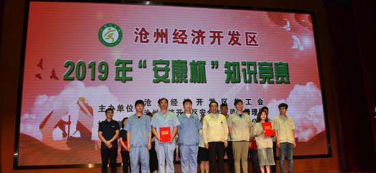 7月16日,由沧州经济开发区总工会、沧州经济开发区安全生产监督管理局主办,北京现代汽车有限公司沧州分公司协办,沧州经济开发区2019年“安康杯”知识竞赛在北京现代沧州分公司举行。我公司综合部部长吕斌携道恩药业安全环保部李世杰、综合部刘立红参加此次比赛。比赛分为必答题、抢答题、风险题三个环节,比赛过程中,我公司三位选手沉着冷静、对答如流,经过激烈的角逐,取得二等奖的骄人成绩。